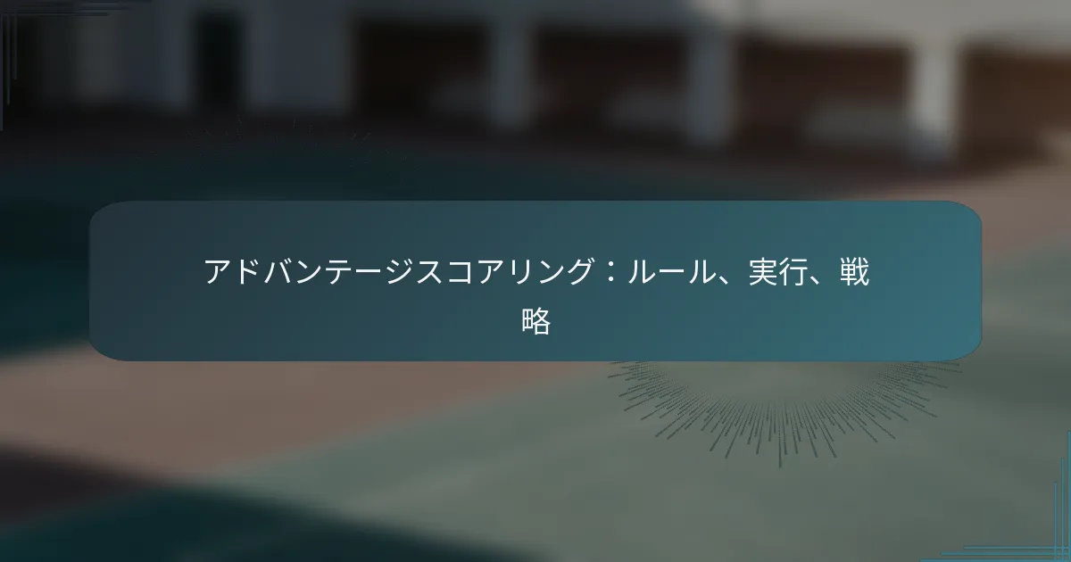 アドバンテージスコアリングは、チームがゲーム中に有利な状況を活かすことを可能にする戦略的アプローチです。ルールを理解し、この戦術を効果的に実行することで、選手はパフォーマンスを向上させ、勝利の可能性を高めることができます。