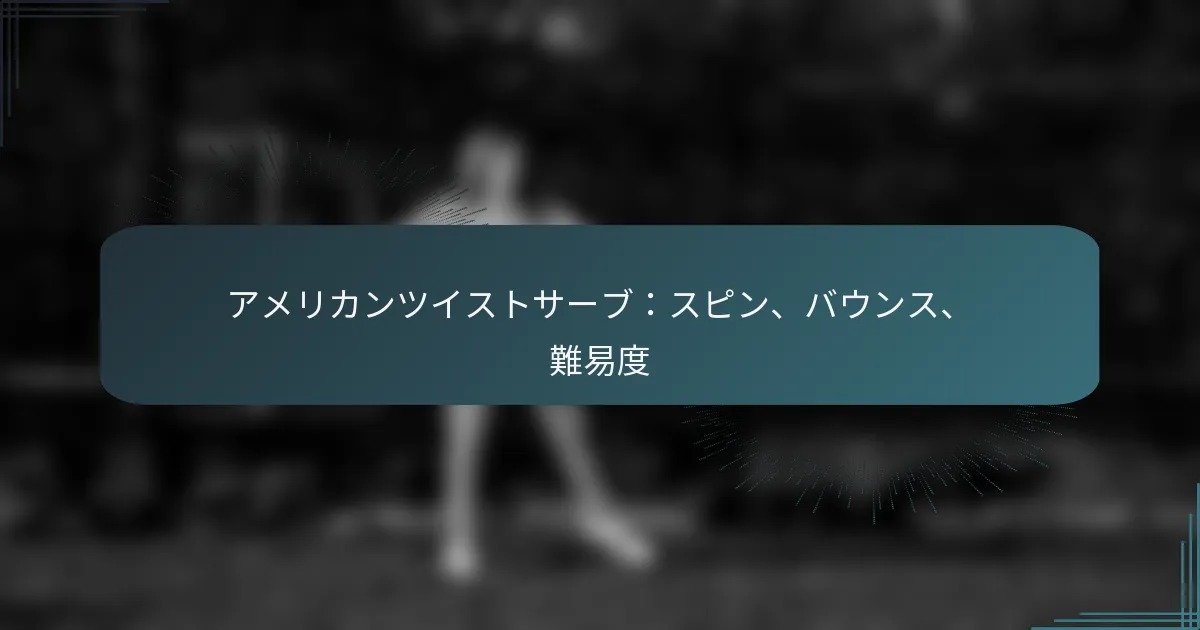 アメリカンツイストサーブは、スピンとバウンドを組み合わせて対戦相手にとって挑戦的なショットを生み出す複雑なテニスサーブです。このサーブを効果的に実行するためには、グリップ、スタンス、スイングメカニクス、スピン生成に焦点を当てる必要があります。