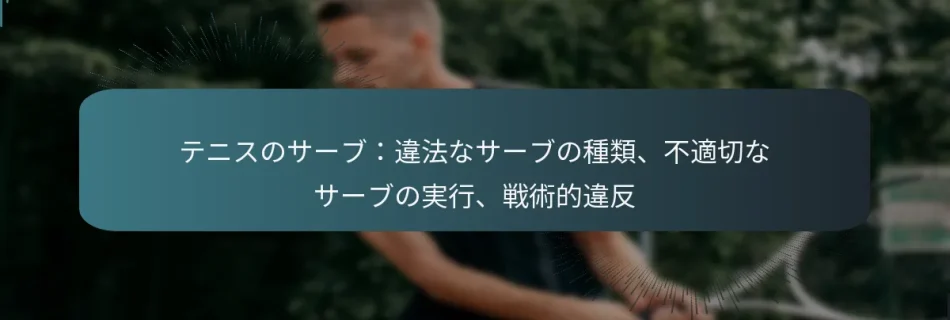 テニスにおいて、サーブは試合の結果に影響を与える重要なスキルですが、違法なサーブや不適切な実行は重大なペナルティや失点につながる可能性があります。戦術的違反を含むさまざまなサーブ違反を理解することは、公正なプレーを維持し、パフォーマンスを向上させることを目指す選手にとって不可欠です。サーブに関するルールをマスターすることは、コストのかかるミスを避けるだけでなく、コート上での戦略的アプローチにも寄与します。 テニスにおける違法なサーブの種類は何ですか? テニスにおける違法なサーブは、サーバーがサービス動作中に定められたルールに従わない場合に発生します。これらの違反を理解することは、選手がペナルティを避け、公正なプレーを維持するために重要です。 違法なサーブの定義 違法なサーブとは、サーバーがサーブ中に公式なテニスルールに従わない行動を指します。これらの行動はフォルトにつながり、ポイントやゲームの喪失を引き起こす可能性があります。サーブの主な目的は、特定の手続きガイドラインに従いながら、正しいサービスボックスにボールを打ち込むことです。 選手は、自分のサーブ動作に関するルールを理解し、意図せずに違反を犯さないようにする必要があります。これには、適切な足の配置、ボールトスの技術、全体的なサーブ動作が含まれます。 一般的な違法サーブの種類 フットフォルト ボールトスの違反 サーバーの位置の違反 これらの違法サーブの各タイプは、試合中にフォルトを引き起こす可能性があります。これらの一般的な違反を理解することで、選手は技術を調整し、プレー中のペナルティを避けることができます。 フットフォルトとその影響 フットフォルトは、サーバーがボールに接触する前にベースラインの上またはその上に足を踏み出すときに発生します。この違反はフォルトと見なされ、サーバーの得点能力に影響を与えます。選手は、ボールが打たれるまで足をベースラインの後ろに保つようにする必要があります。 繰り返しフットフォルトを犯すと、試合の重要なポイントで自信を失い、プレッシャーがかかる可能性があります。足の配置とタイミングを練習することで、このリスクを軽減できます。 不正確なボールトスの違反 ボールトスの違反は、サーバーがボールを正しくリリースしなかったり、不適切な方法でトスしたりする場合に発生します。たとえば、ボールが垂直にトスされなかったり、トスするのではなく落とされた場合、フォルトにつながる可能性があります。選手は、合法的なサーブを確保するために、一貫性があり制御されたボールトスを練習する必要があります。 適切なボールトスを維持することは、望ましいサーブの速度と精度を達成するために不可欠です。適切に実行されたトスは、サーブのパフォーマンスを大幅に向上させることができます。 サーバーの位置の違反 サーバーの位置の違反は、選手がサーブ中に正しいエリアに立っていない場合に発生します。これには、サイドに立ちすぎていることや、適切なサービスボックスを使用していないことが含まれます。このような違反はフォルトを引き起こし、ゲームの流れを乱す可能性があります。 選手は、サービスエリアの寸法を理解し、遵守を確保するために自分の位置を練習する必要があります。適切な位置取りは、ペナルティを避けるだけでなく、サーブの効果を高めるのにも役立ちます。 違法なサーブの結果 違法なサーブの結果はさまざまですが、通常はフォルトやポイントの喪失が含まれます。選手が連続して2回フォルトを犯すと、サーブを完全に失います。これは試合の勢いや選手の自信に大きな影響を与える可能性があります。 違法なサーブのリスクを最小限に抑えるために、選手は定期的にサーブのルールを見直し、技術を練習する必要があります。ルーチンを開発することで、サーブが合法的かつ効果的に実行され、試合中のペナルティの可能性を減らすことができます。 不適切なサーブの実行はゲームプレイにどのように影響しますか? 不適切なサーブの実行は、選手のゲーム戦略や全体的なパフォーマンスに大きな影響を与える可能性があります。サーブ中のミスはフォルトや失点につながり、最終的には試合の結果に影響を与えるため、選手はサーブ技術をマスターすることが重要です。 サーブ実行における一般的なミス 選手はサーブを実行する際に、いくつかの重要なミスを犯すことがよくあります。一般的なエラーの一つは、ボールを一貫してトスしないことで、これがミスヒットや不適切なサーブにつながる可能性があります。もう一つの頻繁な問題は、間違ったグリップを使用することで、これがサーブの角度やスピンに影響を与える可能性があります。 さらに、選手はサーブを急いで行うことがあり、これが姿勢やフォロースルーへの集中を欠く原因となります。これにより、サーブが弱すぎ