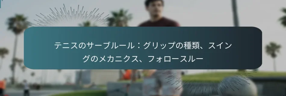 テニスのサーブのルールを理解することは、グリップの種類、スイングのメカニクス、フォロースルーのテクニックを含むため、ゲームを向上させるために不可欠です。グリップの選択(コンチネンタル、イースタン、またはウェスタン)は、サーブのコントロールとスタイルに影響を与えます。さらに、スイングのメカニクスをマスターし、適切なフォロースルーを確保することは、パワーと精度を最大化し、怪我のリスクを最小限に抑えるために重要です。 テニスのサーブにおける主要なグリップの種類は何ですか? テニスのサーブにおいて、グリップの種類はサーブの効果とコントロールに大きく影響します。主なグリップの種類は、コンチネンタル、イースタン、ウェスタンの3つで、それぞれ異なる利点があり、異なるサーブスタイルに適しています。 コンチネンタルグリップ:定義と使用法 コンチネンタルグリップは、ラケットハンドルの第2ベベルに人差し指の基関節を置くことで達成されます。このグリップは多用途で、フラット、スライス、キックサーブなど、さまざまなサーブを可能にします。 このグリップは、スピンとコントロールを生成したいプレーヤーによく使用されます。サーブやボレーへの移行のための自然な動作を促進し、多くのプロ選手に好まれています。 イースタングリップ:定義と使用法 イースタングリップは、人差し指の基関節をラケットハンドルの第3ベベルに置くことを含みます。このグリップは、強力なフラットサーブを打つのに効果的で、スピンよりもスピードを重視するプレーヤーに好まれます。 良好なコントロールとパワーを提供しますが、イースタングリップはコンチネンタルグリップと比較してスピンを生成する能力を制限する可能性があります。より攻撃的なサーブスタイルを好むプレーヤーに理想的です。 ウェスタングリップ:定義と使用法 ウェスタングリップは、ラケットハンドルの第4ベベルに基関節を配置することによって特徴づけられます。このグリップはサーブにはあまり一般的ではありませんが、サーブにトップスピンを最大化したいプレーヤーによって使用されます。 高いバウンドを生み出すことができますが、ウェスタングリップはスピードと精度を犠牲にする可能性があります。一般的に、ベースラインラリーに優れ、重いトップスピンサーブを好むプレーヤーにより適しています。 サーブの種類に基づくグリップの選択 適切なグリップの選択は、実行しようとするサーブの種類に依存します。フラットサーブの場合、スピードを生成する能力からコンチネンタルまたはイースタングリップが好まれることが多いです。コンチネンタルグリップは、混合サーブタイプに特に効果的です。 スピンを生成することに重点を置く場合、コンチネンタルグリップが最良の選択肢であり、ウェスタングリップは高バウンドのトップスピンサーブに有益です。グリップを選ぶ際には、自分のプレースタイルと試合の条件を考慮してください。 グリップタイプに関する一般的な間違い よくある間違いは、意図したサーブタイプに対して間違ったグリップを使用することで、パフォーマンスが不安定になる可能性があります。たとえば、フラットサーブにウェスタングリップを使用すると、パワーとコントロールが不足することがあります。 もう一つの一般的なエラーは、グリップの圧力を調整しないことです。ラケットを強く握りすぎるとスイングのメカニクスが制限され、逆に緩すぎるグリップはミスヒットを引き起こす可能性があります。サーブの効果を高めるために、適切なバランスを見つける練習をしましょう。 スイングのメカニクスはテニスのサーブにどのように影響しますか? スイングのメカニクスは、効果的なテニスサーブを実行するために重要であり、パワーと精度の両方に影響を与えます。適切なメカニクスは、調和の取れた体の動き、腕の位置、ラケットの軌道を含み、これらが一体となってサーブの効果を高め、怪我のリスクを減少させます。 効果的なサーブのための体の位置 効果的なサーブは、適切な体の位置から始まります。足は肩幅に開き、非利き足を少し前に出して安定した基盤を作ります。この姿勢は、サーブ中のバランスと体重移動を改善します。 膝は少し曲げ、胴体は前に傾けてコアの筋肉を使います。この位置はパワーを生み出し、体がサーブを通じて流れるように動くことを確保します。 さらに、頭は静止し、動作中はボールに集中している必要があります。これにより、目の接触を維持し、タイミングを改善し、成功するサーブに不可欠です。 腕の動きとラケットの軌道 腕の動きは、サーブにおけるスイングのメカニクスの重要な要素です。利き腕は上に伸び、肘は少し曲げて、ラケットがスイングを通過する際に自然な動作を可能にします。ラケットはトスの前に頭の後ろに位置し、最大のパワーのためのロードポジション