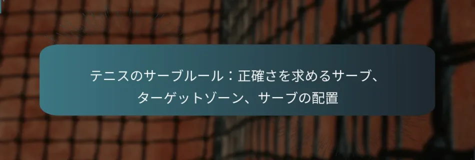テニスにおけるサーブのルールをマスターすることは、合法的かつ効果的なサーブを実行するために不可欠であり、公正なプレーとゲームの基準の遵守を確保します。グリップテクニックやスタンスの調整に焦点を当てることで、プレーヤーは精度を向上させ、サービスボックス内の特定のゾーンを戦略的に狙うことで対戦相手に対して優位に立つことができます。これらの要素を理解することで、サーブの配置が向上するだけでなく、相手のリターンゲームの弱点を突く手助けにもなります。 テニスにおけるサーブの公式ルールは何ですか? テニスにおけるサーブの公式ルールは、プレーヤーがサーブを実行する方法を定めており、合法的な動作、サービスエリアの寸法、フォールトの結果を含みます。これらのルールを理解することは、公正なプレーを維持し、試合中にサーブが正しく実行されることを確保するために重要です。 合法的なサーブの動作とテクニック 合法的なサーブは、ベースラインの後ろから、サイドラインの範囲内で実行されなければなりません。サーバーはボールを空中に投げ、地面に触れる前に打たなければなりません。ラケットはウエストの下でボールに接触し、サーバーはボールが打たれるまでベースラインの上に足を置いてはいけません。 プレーヤーは、フラット、トップスピン、スライスサーブなど、サーブを強化するためにさまざまなテクニックを使用することがよくあります。各テクニックには利点があり、たとえば、フラットサーブは速く、トップスピンサーブはより多くのコントロールとバウンドを提供します。これらのテクニックを練習することで、精度と効果を向上させることができます。 サービスボックスの寸法と要件 サービスボックスは、長さ21フィート、幅13.5フィートの2つの等しい半分に分かれています。サーバーは、対戦相手のサービスボックスの対角線上にボールを落とすことを目指さなければなりません。このエリアは、サーブが合法で成功しているかどうかを判断するために重要です。 ダブルスの試合では、サービスボックスの寸法は同じですが、プレーヤーは追加のサイドラインにも注意を払う必要があります。サーブが正しいエリアに着地することを確保することは、ポイントを獲得し、ゲームの流れを維持するために不可欠です。 フォールトとレットサーブ フォールトは、サーバーがボールを正しいサービスボックスに着地させられない場合に発生します。これは、ボールがアウトオブバウンズになったり、ネットを越えなかったりすることによって起こります。プレーヤーは正しくサーブするために2回の試みが許可されており、両方の試みがフォールトになるとダブルフォールトと見なされ、相手にポイントが与えられます。 レットサーブは、ボールがネットに当たっても正しいサービスボックスに着地する場合に発生します。この場合、サーブはペナルティなしで再実行されます。フォールトとレットサーブのニュアンスを理解することで、プレーヤーは試合の重要なポイントで不必要なミスを避けることができます。 サーブの順序とローテーションルール プレーヤーは、試合の開始時に決定される特定のサーブの順序を遵守しなければなりません。シングルスでは各プレーヤーが交互にサーブし、ダブルスではパートナーが交代でサーブします。この順序を維持することは、公正なプレーとルールの遵守に不可欠です。 各ゲームの後、プレーヤーはサイドを交代し、サーブの順序は同じ順番で続きます。このローテーションにより、すべてのプレーヤーがサーブとリターンの機会を平等に持つことができ、試合の整合性が保たれます。 ルール違反の結果 サーブのルールに違反すると、ポイントやゲームの喪失など、さまざまなペナルティが科される可能性があります。たとえば、ダブルフォールトはサーバーにポイントを失わせます。さらに、プレーヤーが順番を間違えてサーブした場合、対戦チームはポイントの再実行を要求することができます。 プレーヤーは、これらの結果を認識して不必要なペナルティを避けるべきです。定期的な練習とルールの明確な理解は、プレーヤーが効果的にサーブし、試合中の違反のリスクを最小限に抑えるのに役立ちます。 プレーヤーはどのようにサーブの精度を向上させることができますか? プレーヤーは、グリップテクニック、スタンスの調整、一貫した練習に焦点を当てることでサーブの精度を向上させることができます。コート上の特定のゾーンを狙い、視覚化テクニックを取り入れることで、プレーヤーは意図した場所にボールを効果的に配置するより正確なサーブを開発できます。 一貫したサーブのための重要なテクニック 一貫したサーブを達成するために、プレーヤーは幾つかの重要なテクニックに焦点を当てるべきです。まず、グリップが重要です。コンチネンタルグリップは、より良いコント