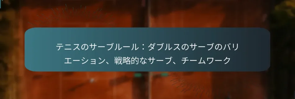 ダブルスのテニスでは、サービングルールを理解することが、公平なプレーを確保し、ゲームの流れを維持するために不可欠です。プレーヤーは、フラット、スライス、キック、アンダーハンドサーブなど、さまざまなサーブのバリエーションを駆使して、戦略的に相手を出し抜くことができます。これらのテクニックを活用し、チームワークに焦点を当てることで、チームはポイントを獲得し、試合のペースをコントロールするチャンスを高めることができます。 ダブルスのテニスにおける主要なサービングルールは何ですか? ダブルスのテニスでは、サービングルールがゲームの流れを維持し、プレーヤー間の公平性を確保するために重要です。各チームは、サーブの順序、ローテーション、および一般的な違反に関する特定のガイドラインを遵守し、ペナルティを避ける必要があります。 ダブルスにおけるサービングルールの定義 ダブルスのサービングルールは、試合中にプレーヤーがどのように、いつサーブを行うかを規定しています。チームの各プレーヤーは交代でサーブを行い、サーブは相手のサービスボックスに対角線上に入れなければなりません。サーバーはまた、ボールがベースラインの後ろで打たれ、サイドライン内に収まることを確認する必要があります。 これらのルールは、両チームが公平に競争できる構造化された環境を作るために設計されています。これらのルールを理解することで、プレーヤーは効果的にサーブを戦略化し、エラーを最小限に抑えることができます。 シングルスとダブルスのサービングルールの違い シングルスとダブルスのサービングルールの主な違いの一つは、使用されるコートのエリアです。シングルスでは、サーバーは直接対面するサービスボックスを狙いますが、ダブルスでは、サーブは受けるチームの2人のプレーヤーに対応する広いサービスボックスに入れなければなりません。 さらに、ダブルスでは、サーブの順序がより複雑で、チームの各プレーヤーがあらかじめ決められたローテーションでサーブを行います。これは、シングルスでは1人のプレーヤーが試合を通じてサーブを行うのとは対照的です。これらの違いを理解することは、ダブルスの試合で効果的なプレーを行うために不可欠です。 一般的な違反とペナルティ ダブルスのサーブにおける一般的な違反には、サーバーがボールを打つ前にベースラインの上または前に足を踏み入れるフットフォールトや、順番を守らずにサーブを行うことが含まれ、これがゲームの流れを乱す可能性があります。プレーヤーがフットフォールトを犯した場合、そのサーブはフォールトと見なされ、サーバーは再度サーブを試みなければなりません。 違反に対するペナルティは異なる場合がありますが、繰り返し違反を犯すとポイントやゲームを失う可能性があります。プレーヤーは、試合のパフォーマンスに影響を与える可能性のある不必要なペナルティを避けるために、これらのルールを理解しておくべきです。 サーブの順序とローテーションルール ダブルスでは、サーブの順序は試合の開始時に確立され、その後も遵守されなければなりません。チームの各プレーヤーは特定の順序でサーブを行い、各ゲームの後にサーブを行うチームがローテーションします。これにより、すべてのプレーヤーが平等にサーブを行う機会が確保されます。 チームは混乱を避けるために、サーブの順序について明確にコミュニケーションを取るべきです。一般的な戦略は、最初のゲームのために1人のプレーヤーを主なサーバーとして指定し、次のゲームではもう1人のプレーヤーがサーブを行うことです。これによりリズムを確立し、パフォーマンスを向上させることができます。 サーブの時間制限 プレーヤーは通常、サーブを行うための制限時間があり、通常はポイント間で約20秒です。この時間制限は、ゲームのペースを維持し、プレーヤーの集中力を保つのに役立ちます。プレーヤーがこの時間制限を超えると、フォールトとしてペナルティを受ける可能性があります。 時間違反を避けるために、プレーヤーは時間制約内で効率的にサーブを行うためのルーチンを開発するべきです。迅速なサーブを練習し、時計に注意を払うことで、プレーヤーは制限内に留まり、試合中の勢いを維持することができます。 ダブルスのテニスで使用されるさまざまなサーブのバリエーションは何ですか? ダブルスのテニスでは、プレーヤーは効果的かつ戦略的にサーブを行うためにさまざまなサーブのバリエーションを利用します。最も一般的なサーブには、フラット、スライス、キック、アンダーハンドサーブがあり、それぞれ状況や相手に応じて独自の利点を提供します。 フラットサーブ:特徴と用途 フラットサーブは、そのスピードと最小限のスピンが特徴で、ポイントを迅速に獲得したいプレーヤーにとって強力な選択肢です。このサーブ