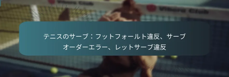 テニスのサーブには、選手が遵守しなければならないいくつかの重要なルールがあり、フットフォールト違反、サービスオーダーエラー、レットサーブ違反が含まれます。フットフォールトは、選手がサーブ中に足を不適切に配置した場合に発生し、サービスオーダーエラーは、順番を守らずにサーブした場合に生じます。また、レットサーブは、サーブがネットに触れた後でも正しいボックスに入る場合に発生し、ゲームプレイの中断を引き起こす可能性があります。これらの違反を理解することは、試合の整合性を維持し、公平なプレイを確保するために不可欠です。 テニスのサーブにおけるフットフォールト違反とは? フットフォールト違反は、選手がサーブ中に足を適切に配置できず、フォールトが発生することです。これは、サーバーがボールを打つ前にベースラインの上または前に足を踏み出すと発生します。これはテニスのルールに反します。 フットフォールト違反の定義 フットフォールトは、選手の足がサーブ中にボールが打たれる前にベースラインまたはその前のエリアに触れることによって発生する違反として定義されます。このルールは、選手が一貫した位置からサーブし、ゲームの公平性を維持することを保証します。フットフォールトは、審判またはラインズパーソンによって呼ばれ、サーバーに対してフォールトがカウントされます。 フットフォールトを引き起こす一般的なシナリオ フットフォールトは、選手がサーブ中に不安や焦りを感じているときによく発生します。一般的なシナリオは、選手が前に急ぎすぎて、足が早すぎる段階でベースラインを越えてしまう場合です。もう一つの頻繁な状況は、プレッシャーのかかるポイントで、選手がサーブのテクニックを変更し、不適切な足の配置につながることです。 ボールが打たれる前にベースラインに足を踏み入れる。 トス中に足を前に動かす。 セカンドサーブの試み中に不適切な位置にいる。 試合中のフットフォールト違反の結果 フットフォールトの即時の結果は、サーブがフォールトとしてカウントされ、サーバーの自信や勢いに影響を与える可能性があります。選手が連続して2回フォールトを犯すと、ポイントを失い、試合の重要な瞬間に悪影響を及ぼす可能性があります。繰り返しのフットフォールトは、フラストレーションを引き起こし、サーバーの全体的なパフォーマンスに影響を与えることがあります。 サーブ中にフットフォールトを避けるためのヒント フットフォールトのリスクを最小限に抑えるために、選手は足の配置に注意を払い、サーブのルーチンを練習するべきです。以下は実行可能なヒントです: サーブする前に後ろの足がベースラインの後ろにあることを確認する。 筋肉の記憶を発達させるために、スローモーションでサーブを練習する。 コート上に視覚的なマーカーを使用して足の位置を測る。 フットフォールトの視覚的例 視覚的な例は、フットフォールトの理解に大いに役立ちます。プロの試合のビデオを見ることで、一般的なフットフォールトのシナリオを強調することができます。多くの指導リソースは、サーブ中の正しい足の配置と不適切な足の配置の比較を提供し、選手が違いを視覚化し、テクニックを調整できるようにします。 テニスにおけるサービスオーダーエラーの定義は? テニスにおけるサービスオーダーエラーは、選手が順番を守らずにサーブするか、確立されたサーブの順序に従わない場合に発生します。この違反は試合の流れを乱し、ペナルティを引き起こす可能性があり、全体的なゲームプレイや戦略に影響を与えることがあります。 サービスオーダーのルールの説明 テニスのサービスオーダーは試合の開始時に決定され、試合中ずっと遵守されなければなりません。選手はゲームを交互にサーブし、1人の選手がゲーム全体をサーブした後に相手に交代します。この順序を維持することは、試合の公平性と一貫性を確保するために重要です。 ルールによれば、選手は試合の開始時に指定された順序でサーブしなければならず、通常はコイントスによって決定されます。正しい順序でサーブしないと、混乱や潜在的なペナルティが生じる可能性があります。 サービスオーダーエラーの一般的な原因 次に誰がサーブするかについての選手間の誤解。 選手がゲームのスコアや試合の進行を見失う。 経験の浅い選手がサービスオーダールールを完全に理解していない。 気を散らす要因や中断が選手にサーブの順番を忘れさせる。 これらのエラーは、選手がルールにあまり慣れていないアマチュアの試合でより一般的に見られます。さらに、プレッシャーのかかる状況は集中力の低下を引き起こし、ミスにつながることがあります。 ゲームプレイに対するサービスオーダーエラーの影響 サービスオーダーエラーは、試合の結果に重大な影響を与える可能性があります。選手が順番を守らず