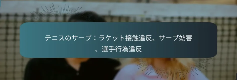 テニスのサーブには、ラケットの接触、サーブの干渉、選手の行動に関するルールを厳守することが求められます。ラケット接触違反はペナルティにつながる可能性があり、サーブの干渉はサーバーの効果的なプレーを妨げます。さらに、選手の行動違反は試合の公正性を損なう可能性があるため、選手はこれらの規則を理解し、公正なプレーを維持することが重要です。 テニスのサーブにおけるラケット接触違反とは? テニスのサーブにおけるラケット接触違反は、選手がサーブ中にラケットがボールとどのように接触するかに関する確立されたルールを守らない場合に発生します。これらの違反はサーブの合法性に影響を与え、ペナルティやポイントの喪失を引き起こす可能性があります。 ラケット接触違反の定義 ラケット接触違反とは、選手がテニスの規則に従わない方法でボールに接触する際に発生する違反を指します。これには、ラケットがボールに当たる方法や、サーブ中の選手の位置に関する問題が含まれます。これらの違反を理解することは、公正なプレーを維持し、サーブが正しく実行されることを確保するために重要です。 一般的なラケット接触違反の種類 サーブ中に発生する一般的なラケット接触違反には、以下のようなものがあります: フットフォールト:選手がボールに接触する前にベースラインの上またはその上に足を踏み出すこと。 ダブルヒット:ボールがラケットに一度の動作で二回当たること。 不正なラケットの位置:ルールに従わない方法でラケットを持つこと、例えば不正なグリップを使用すること。 これらの違反はすべてポイントの喪失やサーブの喪失につながり、試合全体の結果に影響を与える可能性があります。 サーブ中のフットフォールトの例 フットフォールトは、サーブ中に発生する一般的なラケット接触違反です。例えば、選手の足がベースラインに触れたり、ラケットがボールに接触する前にその上を踏み越えたりすると、フットフォールトと見なされます。この違反は前足または後足のいずれかで発生する可能性があり、通常はラインジャッジや審判によって判断されます。 選手は自分の位置に注意を払い、わずかなミスでもフォールトにつながる可能性があることを理解する必要があります。足の位置に注意を払いながらサーブを練習することで、試合中のこれらの違反を最小限に抑えることができます。 不適切なラケットの位置とその結果 不適切なラケットの位置は、不正なサーブや潜在的な怪我など、いくつかの問題を引き起こす可能性があります。例えば、ラケットを強く握りすぎると動きが制限され、効果的なサーブができなくなります。さらに、不正なグリップや角度は、ボールがきれいに当たらず、サーブの速度や精度に影響を与える可能性があります。 選手はサーブを行う前に、自分のグリップやスタンスを定期的に確認し、正しい位置にいることを確認する必要があります。この練習は違反を避けるだけでなく、全体的なパフォーマンスを向上させるのにも役立ちます。 不正なサーブとその判断方法 不正なサーブとは、国際テニス連盟(ITF)が定めた基準を満たさないサーブを指します。これには、ベースラインに足を踏み入れたり、サービスボックス内でボールを打たなかったりするなど、不正な位置から行われるサーブが含まれます。審判やラインジャッジは、サーブを監視し、必要に応じてフォールトを宣告する責任があります。 不正なサーブを避けるために、選手はサーブに関するルールを理解し、一貫して練習する必要があります。合法的なサーブのニュアンスを理解することで、選手は集中力を維持し、ゲームを改善することができます。コーチや仲間からの定期的なフィードバックも、潜在的な違反を特定し修正するのに役立ちます。 テニスにおけるサーブの干渉はどのように発生するか? テニスにおけるサーブの干渉は、相手や外部要因がサーバーのサーブを効果的に実行する能力を妨げるときに発生します。これにより違反が生じ、ポイントの結果に影響を与える可能性があるため、選手はサーブの干渉に関するルールやシナリオを理解することが重要です。 サーブの干渉の定義 サーブの干渉とは、選手が気を散らされず、妨害されることなくサーブを行う能力を妨げるあらゆる行動を指します。これには、相手からの物理的な中断や、サーバーを気を散らす外部要素が含まれます。この概念を理解することは、試合中の公正なプレーを維持するために不可欠です。 サーブの干渉シナリオの種類 サーブの干渉を引き起こす可能性のあるシナリオには、以下のようなものがあります: サーブ中に相手が音を立てたり動いたりする。 物体や人がサーバーの視界に入る。 観客や他の選手からの意図しない気を散らす行動。 これらの状況はすべて、サーバーの集中力やパフォーマンスに大きな影響を与える可能性があります。選手はこれらの潜在