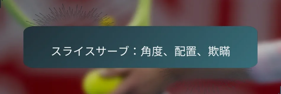 スライスサーブは、サイドスピンを利用して曲がる軌道を生み出す強力なテニステクニックであり、相手がボールのバウンドを予測するのを難しくします。スライスサーブの角度と位置をマスターすることで、プレーヤーは弱点を突き、ポイントを獲得するチャンスを高めることができます。このサーブは、プレーヤーのゲームにバラエティを加えるだけでなく、コート上での欺瞞のための戦略的ツールとしても機能します。 スライスサーブとは何か、どのように実行するのか? スライスサーブは、サイドスピンを与えるタイプのテニスサーブで、ボールがバウンドした後に横に曲がります。このサーブは角度を作り出すのに効果的であり、相手を欺くために使用できるため、どのプレーヤーの arsenal にも貴重な追加要素です。 スライスサーブの定義とメカニクス スライスサーブは、その独特のスピンによって特徴付けられ、サーブ中にボールを横にこすりつけることで生成されます。このスピンにより、ボールは相手から曲がり、効果的に返球するのが難しくなります。メカニクスには、望ましい角度と位置を達成するためのグリップ、スタンス、フォロースルーの組み合わせが含まれます。 スライスサーブを実行するには、プレーヤーは通常、自分の快適さに応じてプラットフォームスタンスまたはピンポイントスタンスから始めます。ラケットの面は、サイドスピンを強化するために接触時にわずかに開いている必要があります。適切な体の回転と体重移動は、パワーと精度を生み出すために重要です。 効果的なスライスのための主要なグリップとスタンス 成功するスライスサーブを実行するためには、適切なグリップとスタンスを選ぶことが不可欠です。最も一般的なグリップには以下が含まれます: コンチネンタルグリップ:多様性とスピンに最適。 イースタングリップ:配置に対するコントロールが向上。 スタンスも重要な役割を果たします。プレーヤーは以下のいずれかを選択できます: プラットフォームスタンス:肩幅に足を開き、安定性を提供。 ピンポイントスタンス:足を揃え、素早いプッシュオフを可能に。 スライスサーブの段階的な実行 適切なグリップとスタンスで始め、バランスのために足を配置します。 リラックスしたグリップでラケットを持ち、面をわずかに開いた状態に保ちます。 トスを始め、望ましい角度を作るために体の前方のポイントを目指します。 スイングをする際に、腰と肩を回転させ、後ろ足から前足に体重を移動させます。 接触時にボールを横にこすり、体を横切ってフォロースルーを行い、スピンを強化します。 サーブ時に避けるべき一般的なミス 多くのプレーヤーは、一般的な落とし穴のためにスライスサーブに苦労します。よくあるミスの一つは、ラケットの面を十分に開かないことで、これによりスピンのないフラットサーブになってしまうことがあります。さらに、不適切な体重移動は、パワーとコントロールの欠如につながる可能性があります。 もう一つの一般的なエラーは、ボールを高すぎたり、体の後ろに投げすぎたりすることで、正しい角度を達成するのが難しくなります。プレーヤーはまた、ラケットを過剰に握ることを避けるべきです。これにより流動性とスピンが妨げられる可能性があります。 スライスサーブをマスターするための視覚補助具とビデオリソース 視覚補助具を利用することで、スライスサーブの理解を大幅に向上させることができます。多くのオンラインプラットフォームでは、サーブのメカニクスと実行を分解した指導ビデオを提供しています。YouTubeのようなウェブサイトでは、プロコーチによる適切なテクニックを示すチュートリアルが掲載されています。 さらに、自分のサーブをレビューするためにスローモーションビデオ分析を使用することを検討してください。これにより、改善が必要な部分を特定し、適切なメカニクスを強化することができます。テニストレーニングアプリのようなリソースも、スライスサーブのスキルを向上させるために特別に設計されたドリルを提供できます。 スライスサーブの角度はその効果にどのように影響するか? スライスサーブの角度は、ボールの軌道を変え、相手に挑戦を与えることで、その効果に大きく影響します。適切な角度のスライスはスピンを誘発し、受け手がボールのバウンドと配置を予測するのを難しくします。 角度がボールの軌道に与える影響の理解 スライスサーブが投げられる角度は、ボールが空中を移動し、コートの表面と相互作用する方法に影響を与えます。低い角度はボールをネットに近づける傾向があり、高い角度はより顕著なアークを作り出し、より大きなスピンとバウンドを可能にします。この変化は相手を混乱させ、ポジショニングとタイミングを調整させることになります。 正しく実行されると、鋭い角度のスライスサーブは受け手をコートの外に押し出し、