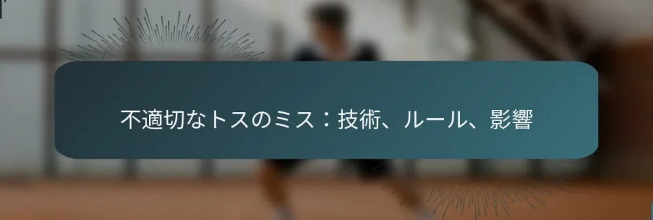 不適切なトスのファウルは、選手がサーブやスロー中に合法的なトスを実行できない場合に発生し、ペナルティやポイントの喪失を引き起こす可能性があります。テニスやバレーボールなどのスポーツにおいて、一貫性と正確性を確保するためには、適切なトステクニックを習得することが不可欠です。これには、正しい手の位置、高さ、リリースの角度が含まれます。トスのファウルに関する具体的なルールを理解することは、選手がペナルティを避け、公正なプレーを確保するために重要です。 不適切なトスのファウルとは? 不適切なトスのファウルは、選手がさまざまなスポーツにおいてサーブやスロー中に合法的なトスを実行できない場合に発生します。このファウルは、スポーツの具体的なルールに応じてペナルティやポイントの喪失につながる可能性があります。 スポーツにおける不適切なトスのファウルの定義 不適切なトスのファウルは、トスがスポーツの統括団体によって定められた基準を満たさない場合に発生する違反として定義されます。これには、トスの高さ、リリースの方法、トス中の選手の位置などの要素が含まれます。各スポーツには、合法的なトスを構成するものを規定する独自のガイドラインがあります。 多くの場合、不適切なトスはプレーの流れを妨げ、試合の結果に影響を与える可能性があります。選手は、トスの不備から生じるペナルティを避けるために、これらのルールを理解しておく必要があります。 トスのファウルに関連する一般的なスポーツ いくつかのスポーツでは、トスのファウルがゲームプレイの重要な側面となっています。これらの中で最も注目すべきスポーツは: テニス バレーボール バドミントン 卓球 これらのスポーツでは、トスはサーブに不可欠であり、ゲームに大きな影響を与える可能性があります。各スポーツの具体的なルールを理解することは、選手がファウルを避けるために重要です。 不適切なトスの主な特徴 不適切なトスのファウルはさまざまな形で現れる可能性がありますが、いくつかの主な特徴には以下が含まれます: トスが低すぎるか高すぎるため、スポーツの高さ要件を満たさない。 ボールがきれいにリリースされず、不均一または不規則な軌道になる。 選手がトス中に動いたり、位置を外れたりして、スタンスのルールに違反する。 これらの特徴を認識することで、選手は技術を調整し、競技中のファウルを避けることができます。 不適切なトスのファウルの例 不適切なトスのファウルの例はスポーツによって異なりますが、一般的には以下が含まれます: テニスでは、サーブの前にボールをベースラインの後ろにトスする。 バレーボールでは、サーブを実行する前にボールをリリースしない。 バドミントンでは、シャトルコックを手から直接打つのではなく、トスする。 これらの例は、トスの小さなミスが試合において重大なペナルティやポイントの喪失につながる可能性があることを示しています。 不適切なトスのファウルの結果 不適切なトスのファウルの結果は深刻であり、しばしばサーブやポイントの喪失につながります。たとえば、テニスでは、トスが違法と見なされると選手はサーブを失う可能性があります。バレーボールでは、不適切なトスがファウルとなり、相手チームにポイントを与えることになります。 さらに、繰り返しのファウルは試合中の選手の自信や勢いに影響を与える可能性があります。不適切なトスの影響を理解することで、選手は技術を磨き、ルールを守る動機付けとなります。 適切なトステクニックを実行するには? 適切なトステクニックは、テニスやバレーボールなどのスポーツで一貫性と正確性を達成するために重要です。これは、次の動きのためにボールが最適な位置にあることを確保するために、正しい手の位置、高さ、リリースの角度を含みます。 適切なトス技術のステップバイステップガイド 手の位置:非利き手でボールを腰の高さで持ちます。指は均等に広げて安定したグリップを提供します。 トスの高さ:快適に打てる高さにボールをトスすることを目指します。一般的には、ほとんどの選手にとって頭の高さくらいが理想です。 リリースの角度:ボールをわずかに上向きの角度でリリースし、真上に移動するようにします。これにより、コントロールが維持されます。 フォロースルー:ボールをリリースした後、トスを行った手は意図したターゲットの方向にフォロースルーし、動作の流動性を促進します。 不適切なトスにつながる一般的なミス ボールを早すぎるか遅すぎるタイミングでリリースし、高さに一貫性がない。 ボールをきつく握ることで、トスがぎこちなくなる。 ボールを前方にトスしすぎて、正確に打つのが難しくなる。 一貫した高さを維持できず、予測不可能な結果を招く。 トステクニックを習得するための視覚的補助 側面 適切な技術 不適切な技術 手の位置 指を開き