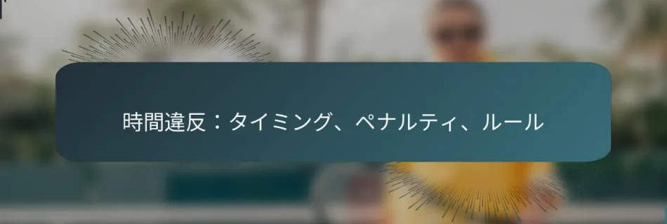 時間違反は、個人がスポーツ、法的手続き、職場の規則など、さまざまな場面で定められた時間制限に従わない場合に発生します。これらの違反は罰則や混乱を引き起こす可能性があるため、遵守を確保し、パフォーマンス基準を維持するために、タイミングルールと関連する結果を理解することが重要です。 時間違反とは何ですか? 時間違反とは、スポーツ、法的手続き、職場の規則など、さまざまな文脈で定められた時間制限やスケジュールに従わないことを指します。このような違反は、罰則、混乱、パフォーマンスや遵守に影響を与えるその他の結果を引き起こす可能性があります。 スポーツにおける時間違反の定義 スポーツにおいて、時間違反は、選手またはチームが特定の行動やイベントに対して割り当てられた時間を超える場合に発生します。これは、テニスのサーブやバスケットボールでのプレイの実行に時間がかかりすぎるなど、さまざまなシナリオで発生する可能性があります。 スポーツにおける時間違反に対する一般的な罰則には、ポイントの喪失、ファウル、またはイベントからの失格が含まれます。これらのルールの施行は、公正な競争を確保し、試合のペースを維持します。 法的文脈における時間違反の定義 法的な場面では、時間違反は通常、文書の提出期限や法廷への出廷期限を逃すことを指します。このような違反は、当事者のケースを損なう可能性があり、制裁や不利な判決を招くことがあります。 法的な時間違反は、管轄区域によって異なる特定のルールや規則に従います。裁判所は、効率的なケース管理を確保し、法的プロセスの整合性を維持するために厳格な期限を課すことがよくあります。 職場の規則における時間違反の定義 職場では、時間違反は、従業員が予定された労働時間やプロジェクトの完了期限に従わない場合に発生する可能性があります。これにより、生産性の低下や懲戒処分の可能性が生じることがあります。 職場の規則は、時間管理や時間厳守に関する期待を概説することがよくあります。雇用主は、従業員が義務を果たすことを確保するために、出席やパフォーマンスを監視するポリシーを実施することがあります。 時間違反の一般的な例 テニスのサーブの時間制限を超えること。 法的手続きにおける法廷出廷や提出期限を逃すこと。 職場での遅刻やプロジェクトの締切を守れないこと。 これらの例は、時間違反がさまざまな分野でどのように現れるかを示しており、時間制約を守ることの重要性を強調しています。 時間違反における文脈の違い 時間違反は、文脈によって大きく異なる場合があります。スポーツでは、ルールが明確であり、即座に施行されることが多い一方、法的な時間違反は、控訴や再考の申し立てなど、より複雑な結果を伴うことがあります。 職場では、時間違反の影響は企業文化やポリシーによって異なる場合があります。一部の組織は厳格なアプローチを採用する一方で、他の組織は個人的な事情に配慮して柔軟性を提供する場合があります。 これらの文脈の違いを理解することは、時間に関連する期待を効果的に管理し、各場面での罰則を避けるために重要です。 時間違反に関するタイミングルールは何ですか? 時間違反に関するタイミングルールは、スポーツ、法的な場面、職場など、さまざまな文脈における特定の行動に許可される期間を規定する規則を指します。これらのタイミングルールを遵守することは重要であり、違反は罰則やその他の結果を引き起こす可能性があります。 スポーツ競技におけるタイミングルール スポーツでは、タイミングルールは、選手がテニスのサーブやレースの開始など、特定の行動を完了するために必要な時間を定めています。これらのルールは、公正なプレーを確保し、競技の整合性を維持するために施行されます。 一般的な違反には、陸上競技でのフライングスタートやサーブの遅延が含まれます。 違反に対する罰則は、スポーツによって失格から時間罰までさまざまです。 各スポーツの特定のタイミングルールを理解することは、選手やコーチにとって重要です。 たとえば、水泳では、選手はスタート信号の後に特定の時間内にスタートしなければならず、そうしないと失格になる可能性があります。同様に、バスケットボールでは、ボールを保持した後に限られた時間内にシュートを打たなければなりません。 法的手続きにおけるタイミングルール 法的手続きには、文書を提出したり、申し立てに応じたり、その他の行動を完了するために必要な時間を規定する厳格なタイミングルールがあります。これらのルールは、ケースが効率的かつ公正に進行することを確保するために設計されています。 期限を守れないと、ケースの却下や不利な判決などの罰則が科される可能性があります。 一般的なタイミング違反には、遅延提出や法廷出廷の欠席が含まれます。 たとえば、民事訴訟