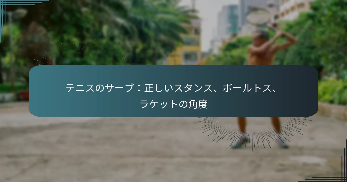 テニスのサーブをマスターするには、3つの重要な要素に注意を払う必要があります:スタンス、ボールトス、ラケットの角度です。適切なスタンスは、パワーと精度のためのしっかりとした基盤を築き、効果的なボールトスはタイミングとスイングの実行に不可欠です。さらに、正しいラケットの角度はサーブのスピンと軌道に影響を与えるため、コートでのパフォーマンスを向上させたい選手にとって重要です。