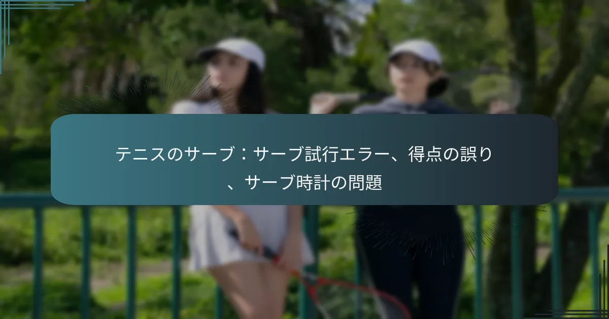 テニスのサーブには、サービス試行エラー、不正確なスコアの違反、サービスクロックの問題など、試合に大きな影響を与えるいくつかの重要な要素が含まれています。サービス試行エラーは、選手が有効なサーブを行えなかった場合に発生し、ポイントを失う可能性があります。さらに、不正確なスコアは混乱を引き起こす可能性があり、サービスクロックの問題はタイミング違反を引き起こすことがあり、これらすべてが試合のリズムと公平性を乱す可能性があります。