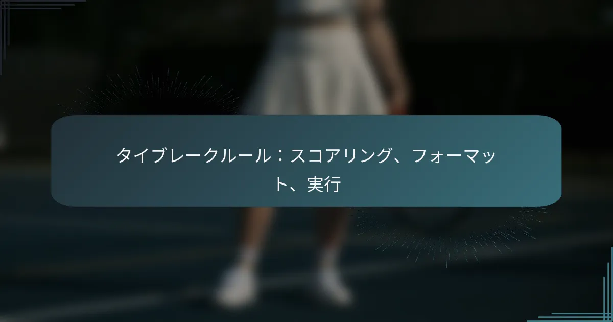 タイブレークルールは、競技者が競技で同じスコアを達成した場合に勝者を決定するために設計された重要な手続きです。これらのルールは、特定のスコアリング基準と各スポーツに合わせた形式を用いることで、公平な結果を確保し、イベントの整合性を保ちます。明確な実行ガイドラインを確立することで、タイブレークは競技者を区別し、引き分けを効果的に解決するのに役立ちます。